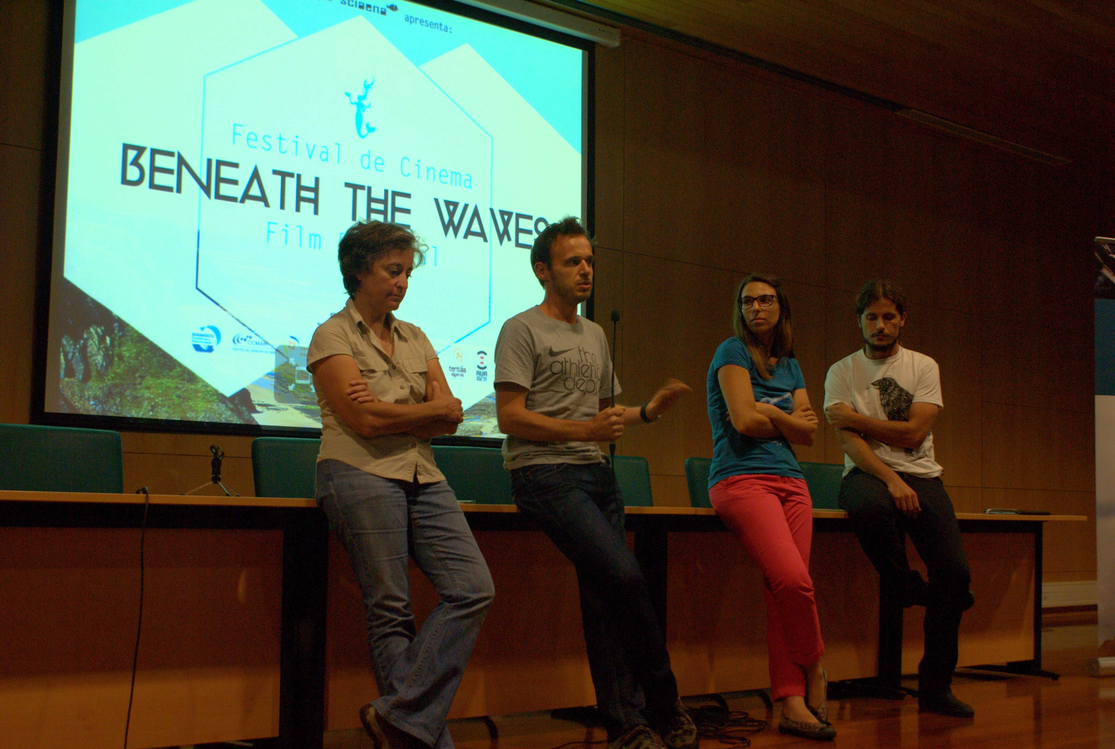 Panelists lead a discussion with the audience at a Beneath the Waves event in Faro, Portugal